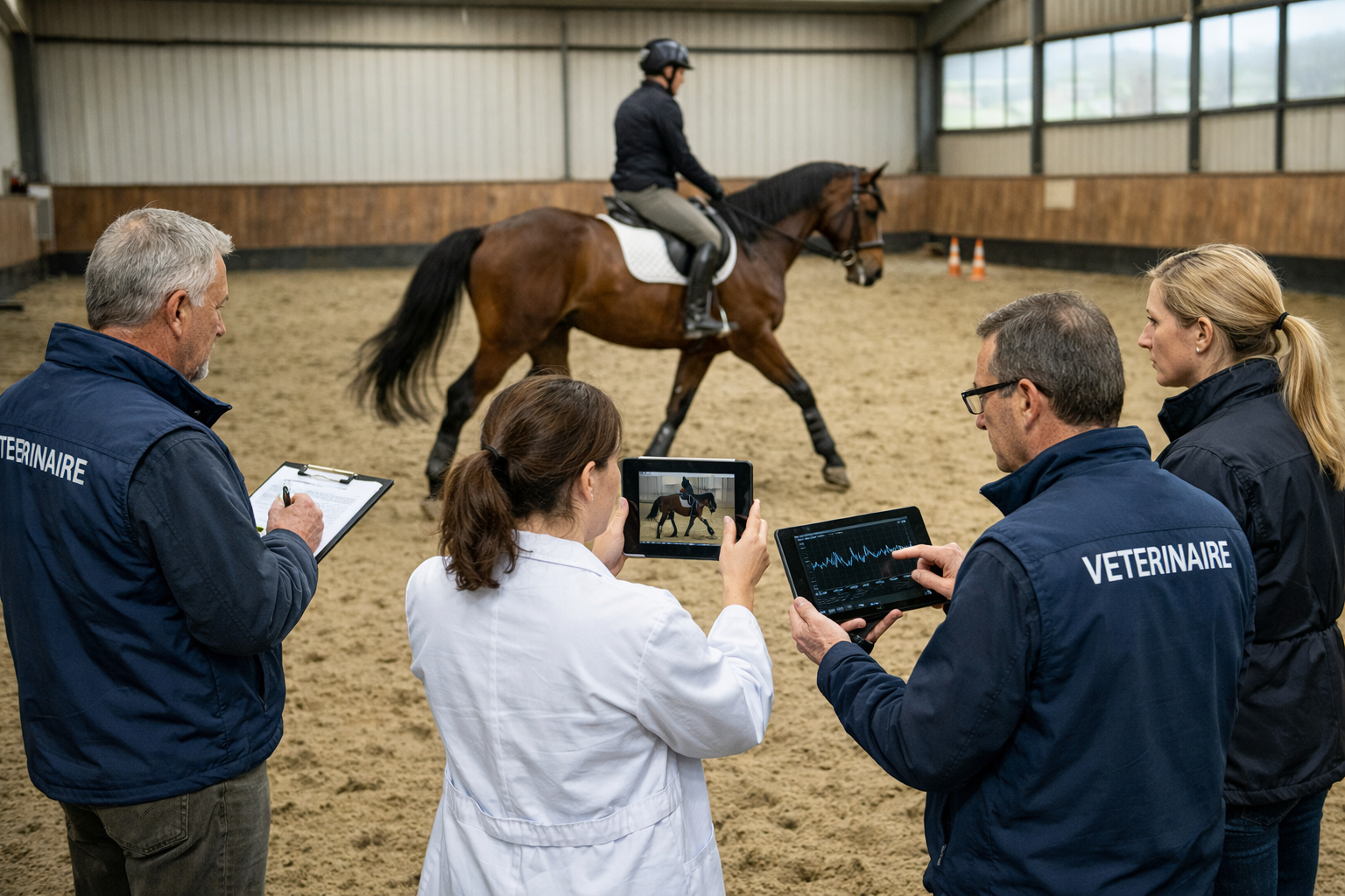 - Examen du cheval à pied et monté, observation fine de la biomécanique et analyse croisée vétérinaire–cavalier